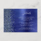 Esta elegante tarjeta de detalles de boda moderna incluye una imagen de fondo de metal cepillado azul marino con purpurina de diamante falsa. Personalice el texto blanco, con el título "Detalles" en letra manuscrita elegante y el texto restante en letra sans serif. La parte trasera presenta un diseño a juego de metal cepillado azul marino y purpurina falsa.