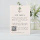 Esta sencilla y elegante tarjeta de detalles de boda tropical tiene un refinado estilo Palm Beach con una sensibilidad moderna y minimalista. Un monograma personalizado de palmera real ancla el diseño, con las iniciales de la novia y el novio colocadas con gracia a ambos lados de la palma para un aspecto que se siente personal y pulido. La tipografía limpia y el espaciado aireado con un fondo beige marfil, el color de una playa de arena azucarada, crean una estética de alta gama que combina el calor tropical con la sofisticación contemporánea. Perfecta para una celebración costera o de destino, este diseño marca el tono para una boda elegante y soleada donde el lujo sin esfuerzo y los detalles reflexivos toman el centro del escenario.
