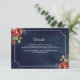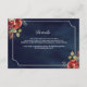 Tarjeta De Recepción Detalles de Boda de Rosas Rojas Florales Azul Mari