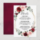 Tarjeta de detalles de boda floral temática de pizarra rosa polvorienta de vino de Borgoña con elegante ramo de capullos de flores de borgoña, vino, azul polvoriento, rosado, rosas y peonía y hojas de eucalipto verde polvoriento y marco geométrico neutro con brillo falso rojo. Por favor, contácteme para cualquier ayuda en personalización o si necesita cualquier otro producto con este diseño