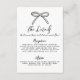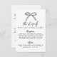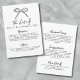 Esta tarjeta de detalles de la boda presenta un diseño simple y minimalista con un delicado lazo dibujado a mano en la parte superior. La parte frontal incluye un diseño limpio con una mezcla de letra manuscrita y una fuente manuscrita simple, lo que ofrece un aspecto sofisticado y accesible.