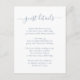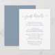 Proporcione a sus invitados los detalles importantes con esta tarjeta de inclusión de boda elegante azul polvo que presenta una fuente de escritura moderna. Artículos coincidentes disponibles.