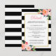 Tarjeta De Recepción Detalles de Boda Floral Moderno Rayas Negras y Bla