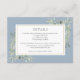 Con características de delicada acuarela de vegetación de jardín campestre, esta tarjeta de detalles de boda botánicos chic se puede personalizar con su información especial de RSVP, con un fondo azul polvoriento en el reverso. Perfecto para bodas, duchas de novia, duchas de bebé, bautizos, fiestas de compromiso, celebraciones de aniversario, graduaciones, cumpleaños y otros eventos especiales durante todo el año! Diseñado por Thisisnotme©