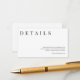 Haga saber a sus invitados sobre los detalles de su boda con esta tarjeta de detalles de boda personalizable. Cuenta con tipografía simple, caligrafía moderna y un borde simple. Personalice esta tarjeta de detalles de boda formal agregando los detalles de su boda. Esta tarjeta de detalles minimalista es perfecta para bodas, fiestas de compromiso y mucho más. No dude en enviarme un mensaje con cualquier pregunta relacionada con el diseño: ¡estaré encantado de ayudar!