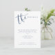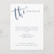 Las tarjetas de detalles de boda modernas simples incluyen letra manuscrita en azul marino y blanco, elegantes y con estilo.