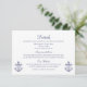 Tarjeta De Recepción Detalles de boda náuticos de azul marino de ancla
