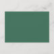 Diseño de tarjeta de detalles de boda moderna con hojas tropicales y flores de hibisco en acuarela sobre fondo blanco. El reverso de la tarjeta es de color verde profundo.