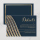 Tarjeta de detalles de lujo con brillo dorado, azul marino y teal geométrico elegante y moderno. Una tarjeta de detalles elegante con brillo dorado de lujo personalizada es perfecta para cualquier chica glamorosa y sofisticada. Este diseño es perfecto para un evento de fiesta moderno y elegante. Personalice este diseño con su propio mensaje e información personalizada. Todos los diseños son impresos.