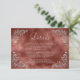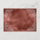 Esta elegante tarjeta de gabinete de detalles de boda inspirada en la cosecha de vintage presenta el texto en escritura gris plateada pálida y fuentes serif, enmarcada por un delicado motivo follaje plateado vintage en cuatro esquinas sobre un fondo acuático color rojizo de canela. El marco y el fondo de la acuarela se repiten al revés.