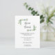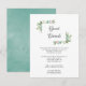 Elegante invitación de boda de Navidad con estilo pastel de acuarela de acebo con eucalipto, muérdago y pino complementada con un lavado de acuarela de color menta en el reverso.