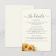 Información de invitado de boda de girasol acuarela boho rústica moderna, tarjeta de inserción de detalles de información de boda con tipografía de escritura a mano simple.