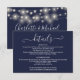 Una elegante tarjeta de información de detalles de la boda en azul marino con luces de cuerda bonitas. Personalice con sus detalles especiales en tipografía elegante y sus nombres y fecha de la boda en el reverso. Diseñado por Thisisnotme©