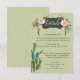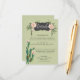 Esta tarjeta de detalles del jardín de cactus cuenta con un cactus de pera espesa con flores rosas. Todos los detalles importantes del boda se pueden editar. Los colores son verde, rosa, blanco y negro.