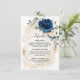 Tarjeta de detalles de boda floral azul marino oscuro con un elegante ramo de rosas de color azul marino, azul real, blanco, dorado, champán marfil, rosa desmayado, botones de flores de ranunculus y hojas de eucalipto verde salvia, y elegante acuarela con marco geométrico de purpurina redonda. Por favor, contacte conmigo para cualquier ayuda en personalización o si necesita algún otro producto con este diseño.