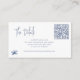 Elegante sitio web de boda de guiones minimalistas detalles de la polvorienta tarjeta de gabinete MINI SIZE de presupuesto azul y blanco con su CÓDIGO QR (generado automáticamente con el enlace de su sitio web). Una forma sencilla de informar a sus invitados sobre su sitio web, pedirles que se pongan en contacto con RSVP en línea o invitarlos a encontrar más información sobre su ceremonia y recepción.