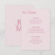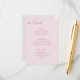 Proporciona detalles adicionales a los invitados de la boda y recepción en tonos rosados. La tarjeta de inclusión presenta detalles de recepción, transporte y alojamiento en texto rosa sobre un fondo rosa claro. El texto se puede cambiar a detalles de su elección.