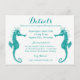 Agregue un toque de diversión a sus invitaciones de boda o fiesta con esta encantadora tarjeta de detalles de boda/fiesta con caballito de mar en turquesa y blanco. Esta linda tarjeta de detalles se puede personalizar para muchos eventos * bodas de verano y en la playa * negocios * eventos de ventas * fiestas * recaudaciones de fondos / organizaciones benéficas * fiestas de jardín y té