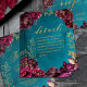Invitación a la boda con el tono de una joya verde azulada azul y profunda frambuesa morada color rojo púrpura azul y frambuesa. Detalles de la hoja que incluye con la invitación cuando necesite transmitir información adicional a sus invitados.