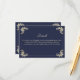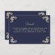 Elegante tarjeta de detalles boda azul marino y barroco dorado con un lujoso marco victoriano con flores ornamentales y un monograma personalizado en la parte posterior. Perfecto para compartir información extra boda como detalles de recepción, direcciones, alojamiento o la página web de su boda. Este sofisticado diseño combina con la suite de invitados a bodas de oro y marina completa para ofrecer un aspecto atemporal y coordinado.