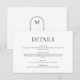 Tarjeta De Recepción Detalles del Boda blanco y negro de monograma mini