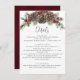 Esta elegante tarjeta de detalles bodas con temática invernal cuenta con un rústico ramo de vegetación acuática y conos de pino, acentuados con bayas rojas. En la parte trasera hay una textura de color burdeos. Encuentra el resto de la suite de invitaciones para bodas y más productos que coincidan en la colección, o envíame un mensaje a través de Zazzle Chat si necesitas ajustes de diseño o más productos que coincidan.