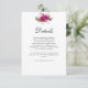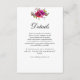 Tarjeta de envoltorio con detalles del boda de color morado rosado de primavera. Añada un toque de elegancia a su suite boda con esta tarjeta de gabinete de detalles de boda de color rosa y púrpura. Con un diseño suave y romántico de acuarela en delicados tonos rosa y violeta, esta tarjeta es la manera perfecta de compartir información boda importante con sus huéspedes. Ideal para incluir detalles del lugar de celebración, alojamiento, código de vestimenta o una página web boda, esta tarjeta de bonito diseño complementa a un boda de primavera o verano con su amplio y sofisticado encanto.