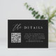 Tarjetas de detalles del Boda de código QR de caligrafía elegante negra