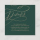 Esta romántica caligrafía verde QR código boda detalles tarjeta de gabinete es perfecta para un boda simple. El moderno diseño clásico presenta vistosos remolinos y florituras con magnífica y elegante tipografía de oro con imitación de champagne a mano. Nota: Este diseño no tiene Relieve metalizado oro real. Es un gráfico de alta calidad hecho para parecer un Relieve metalizado dorado.