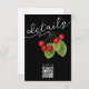 Esta tarjeta de recinto boda de doble cara de moda presenta un ilustracion botánico vintage de cerezas rojas vibrantes con hojas verdes, colgando elegantemente sobre la palabra "Detalles" en elegante caligrafía blanca, todo enmarcado en un elegante fondo negro. Un moderno código QR en blanco y negro permite a los huéspedes acceder fácilmente a su sitio web boda o a las herramientas de marketing digital. El reverso muestra un elegante guión rojo y negro sobre un fondo blanco limpio. Personalizable completo, puede reemplazar los códigos de texto y QR con sus propios detalles. Perfecto para un boda rústico al aire libre, explore nuestra Colección de Bodas de cerezas para encontrar productos para completar su temática.