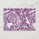Bonito, elegantes siluetas botánicas florales de naturaleza, follaje blanco, hojas y flores sobre un fondo morado. Una magnífica tarjeta de correspondencia para toda la información adicional de su boda.