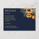 Tarjeta De Recepción Detalles del boda de girasol rústico azul marino o