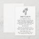 Comparta información boda esencial con sus huéspedes utilizando esta moderna tarjeta de detalles, con una palmera negra dibujada a mano en la parte superior de un fondo blanco. Perfecto para bodas tropicales, costeras o de destino, este diseño minimalista ofrece espacio para alojar hoteles, detalles de recepción, su sitio web boda y más. Una adición elegante y práctica a su suite de invitados a la boda.