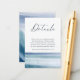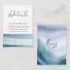 Informe a sus huéspedes de los detalles de su boda, como alojamiento en el hotel, recepción, registro de regalos, direcciones y sitio web del boda con esta tarjeta de presentación de detalles náuticos. Las abstractas olas oceánicas en tonos azul y turquesa costero y el caballito de mar monogramo de una pareja personalizada lo convierten en una elección perfecta para una temática playera o un boda costero. Arte por KL Stock