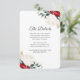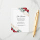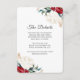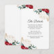 Esta hermosa tarjeta de información para Navidades y bodas de invierno cuenta con flores de color rojo y blanco y vegetación con elementos falsos de oro y elegante tipografía de escritura. Consulte esta colección de bodas de vacaciones para coordinar elementos.