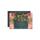 Tarjeta de detalles de alojamiento y direcciones bodas con guión falso de caligrafía de oro, hilo de brillantes rústicos vintage de líneas de luces y rosas de peones rojos, rosados y ondulados bordean el fondo de la pizarra azul marino de medianoche. Ideal para la noche de verano en primavera | jardín | otoño | elegantes bodas inspirados en la moda de lujo u otros eventos especiales.
