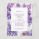 Mejore la anticipación de su día de boda con nuestra tarjeta de detalles de Boda Lilacs. Esta tarjeta de diseño exquisito, adornada con un oasis visual de flores de lilo, sirve de guía completa para sus huéspedes. Personalizar esta tarjeta para incluir información esencial sobre las reservas de hotel, detalles sobre el hotel elegido y una breve descripción de la ceremonia y su lugar de celebración.