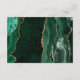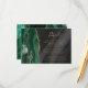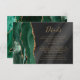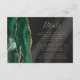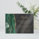 El borde izquierdo de esta elegante y moderna tarjeta de gabinete de detalles bodas cuenta con un borde de agate de color verde esmeralda recortado con falso purpurina de oro. El texto está escrito a mano en color dorado y el tipo de letra de copperplate en un fondo de color de agua negro. El reverso presenta un diseño de agate verde y dorado a juego.