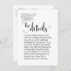 Una moderna y elegante, "lo hacemos" boda de detalles de invitación tarjeta de gabinete con una elegante caligrafía de swash anunciando, "los detalles", con una letra serif romana para el cuerpo, y sus nombres completos en la parte posterior. En la parte superior izquierda, un animado ramo de flores blancas dibujado a mano anuncia tu título.