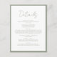 Tarjeta De Recepción Detalles del Boda del guión blanco verde sabio sim