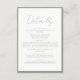 Tarjeta De Recepción Detalles del Boda del guión verde de sabio simple