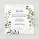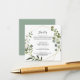 Esta tarjeta de gabinete de detalles bodas españoles de hojas verdes tropicales es perfecta para un boda moderno. El diseño está decorado con hermosas hojas verdes pintadas a mano, adornando un marco geométrico dorado.