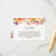 Esta vibrante tarjeta de alojamiento con detalles florales de boda de primavera es la adición perfecta a su suite de invitados a la boda, que le permite proporcionar a los huéspedes toda la información importante que necesitarán sobre su día especial. Con un hermoso diseño floral de acuarela y texto de personalizable, esta tarjeta de gabinete se adapta a cualquier estilo boda. Es la forma perfecta de añadir un toque de personalidad a tus invitaciones. Puede incluir información sobre el alojamiento, la recepción, el registro de bodas y otros detalles importantes que sus huéspedes necesitan.