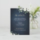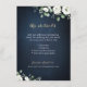Guión dorado moderno y vegetación de eucaliptos florales blancos de color agua sobre fondo azul marino oscuro, elegante y elegante, ideal para boda rústico verde, bodas botánicas en el jardín, boda con flores boho en verano e invierno. Vea todas las piezas coincidentes de la colección.