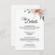 Esta tarjeta de gabinete de detalles de boda floral rosa y malva ofrece un ambiente clásico de jardín antiguo para cualquier boda de primavera o verano. Los tonos rosas, como el rosa polvoriento y el rubor, combinados con la caligrafía elegante, aportan un toque elegante y formal al diseño, mientras que las flores lindas y las hojas verdes le aportan un elemento rústico y antiguo a la celebración del matrimonio. Añade más detalles a la parte posterior con cualquier información adicional para sus huéspedes.