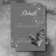 Entre en el encantador reino de nuestra tarjeta de detalles de boda de Halloween, donde el amor se encuentra con el misterio glamoroso en una celebración hechizante. Con un fondo de crujiente gris carbón, este diseño le da un tono deslumbrante y oscuro a su día especial. Un murciélago de carbón vegetal con las alas esparcidas se sienta sobre los detalles de tu boda, rodeado por un grupo de brillantes diamantes sueltos, agregando brillo a la oscura belleza del diseño. Capturan el espíritu de Halloween y preparan el escenario para un boda tan bello como inolvidable. Elija nuestra suite de invitados para bodas de Halloween para emprender un viaje a la sombra y crear recuerdos que durarán toda la vida. Creado por Simply Farmhouse Press.