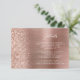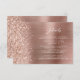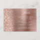 Esta elegante y moderna tarjeta de gabinete de detalles bodas cuenta con una imagen de fondo metalizado subió en oro salpicada con falsos purpurinas de diamantes. Personalizar el texto en blanco, con el título "Detalles" en un guión elegante para escritura a mano y el texto restante en letra sans serif. El reverso presenta un diseño metalizado y falso de purpurina rosa de color dorado.