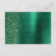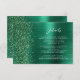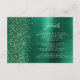 Esta elegante y moderna tarjeta de gabinete de detalles bodas cuenta con una imagen de fondo metalizado de color verde esmeralda salpicada de purpurinas de diamantes falsos verdes. Personalizar el texto en blanco, con el título "Detalles" en un guión elegante para escritura a mano y el texto restante en letra sans serif. El reverso presenta un diseño metalizado de color verde y falso purpurina.