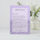 Tarjeta De Recepción Detalles del Boda moderno Purpurina de lavanda