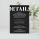 Tarjeta De Recepción Detalles del Boda moderno simple negrita negra y b